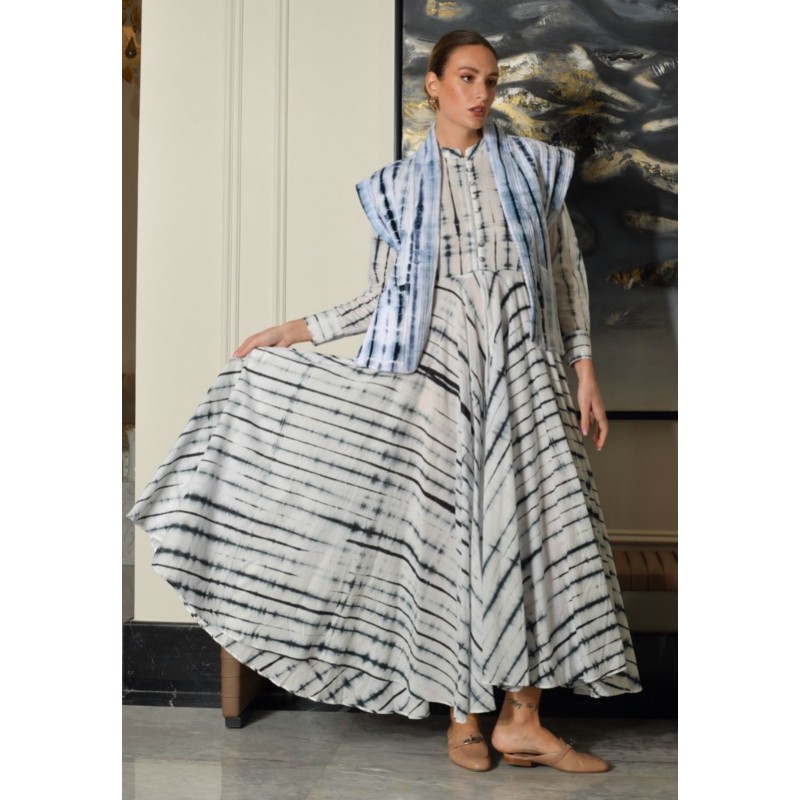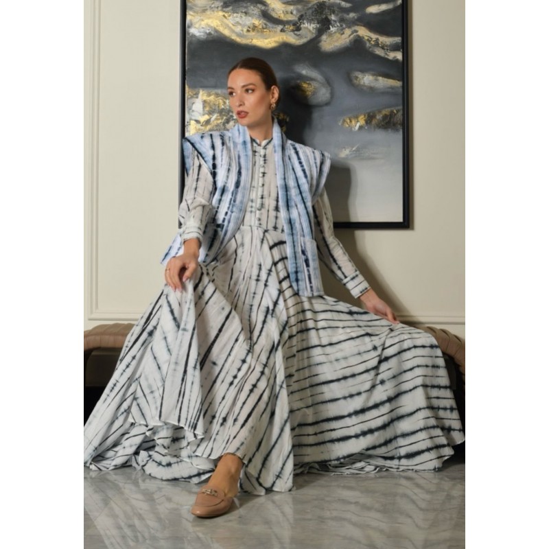 ربطة عنق وخياطة سترة مخملية مبطنة مع فستان قطني طول الفستان ٥٤ بوصة، الكم ٢٢ بوصة، الصدر ٤٢ بوصة