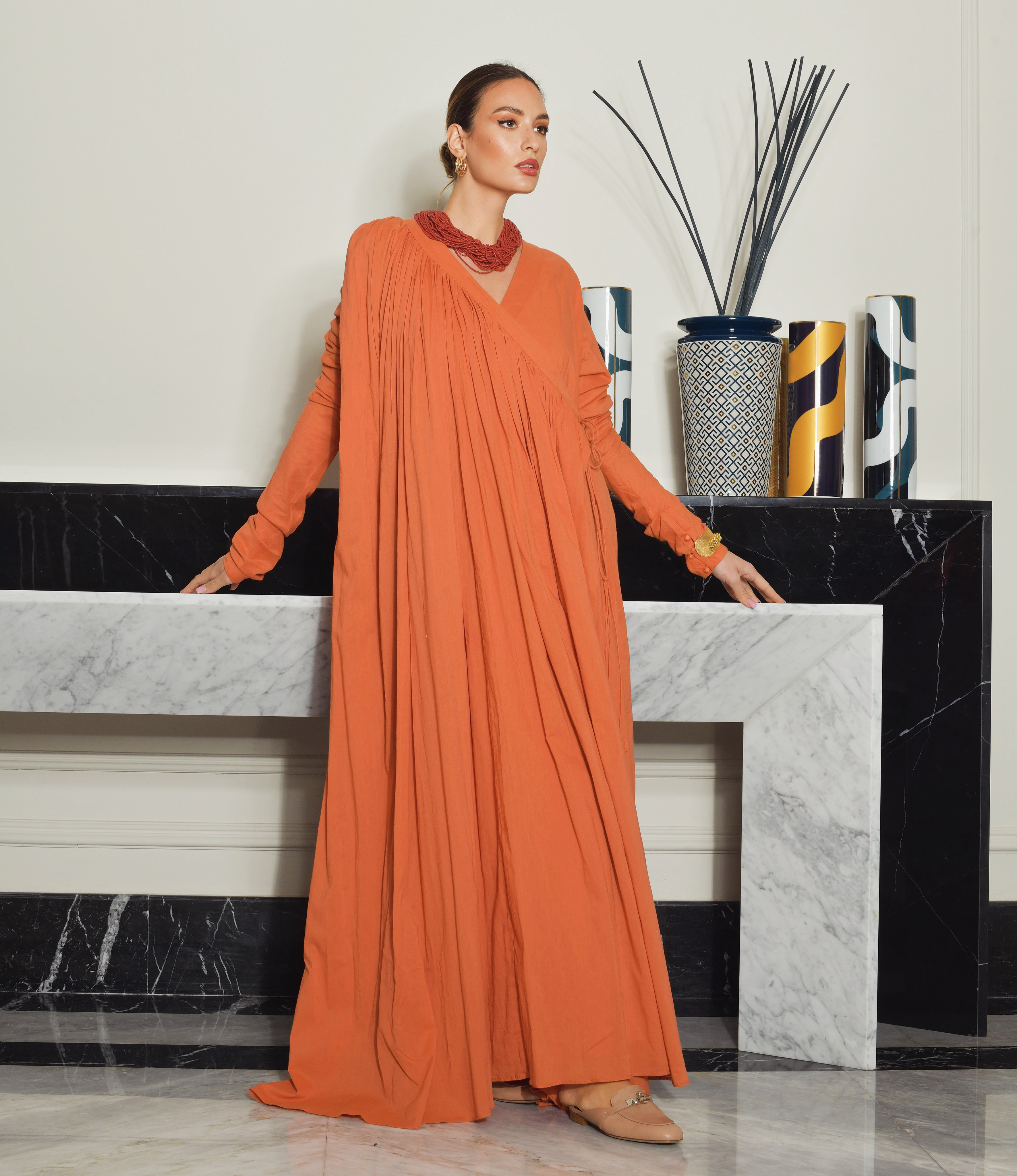 Valentino Pleated Orange Color Dress