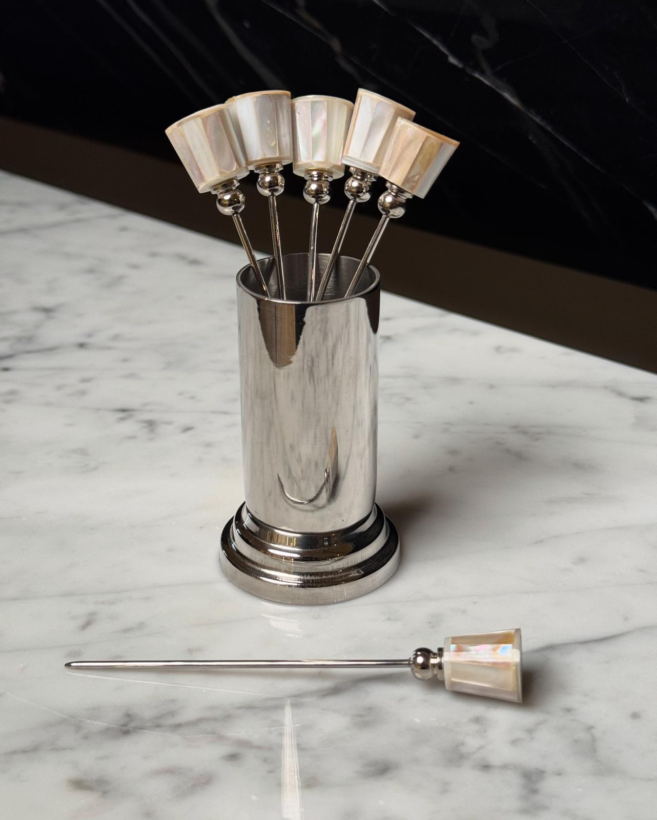 Olive Pick - 6 pcs pick with stand QE8263A - stainless Steel
